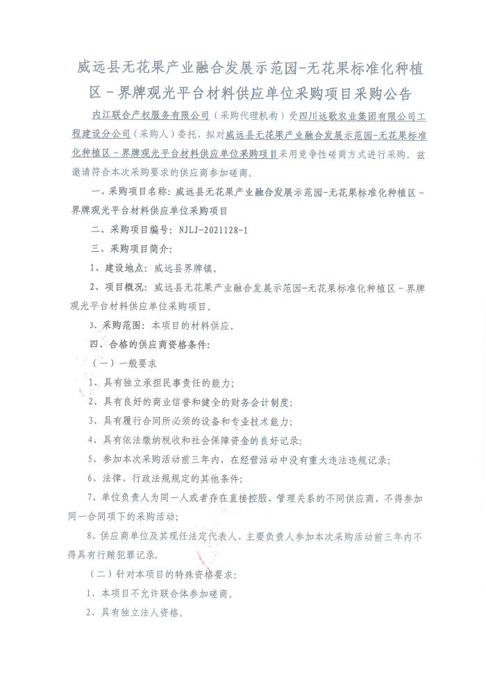 威远县无花果产业融合发展示范园-无花果标准化种植区-界牌观光平台材料供应单位采购项目采购公告