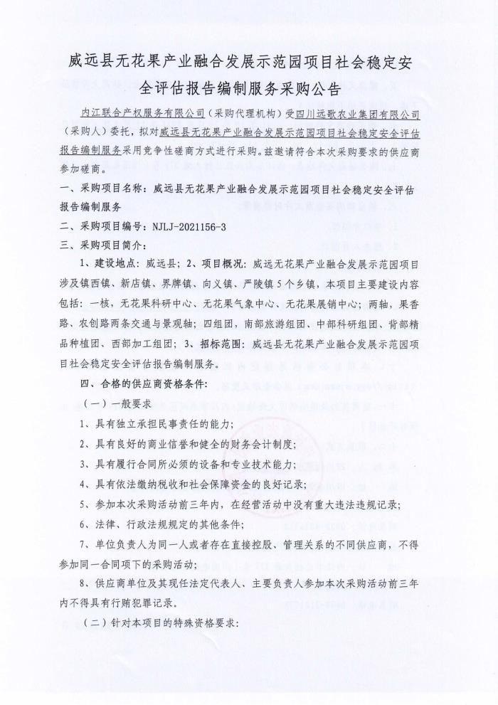 威远县无花果产业融合发展示范园项目社会稳定安全评估报告编制服务采购公告