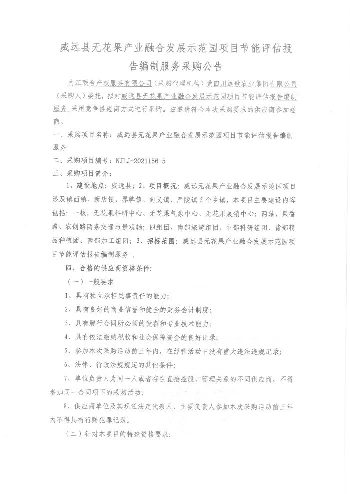 威远县无花果产业融合发展示范园项目节能评估报告编制服务采购公告