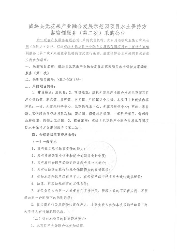 威远县无花果产业融合发展示范园项目水土保持方案编制服务采购公告(第二次)