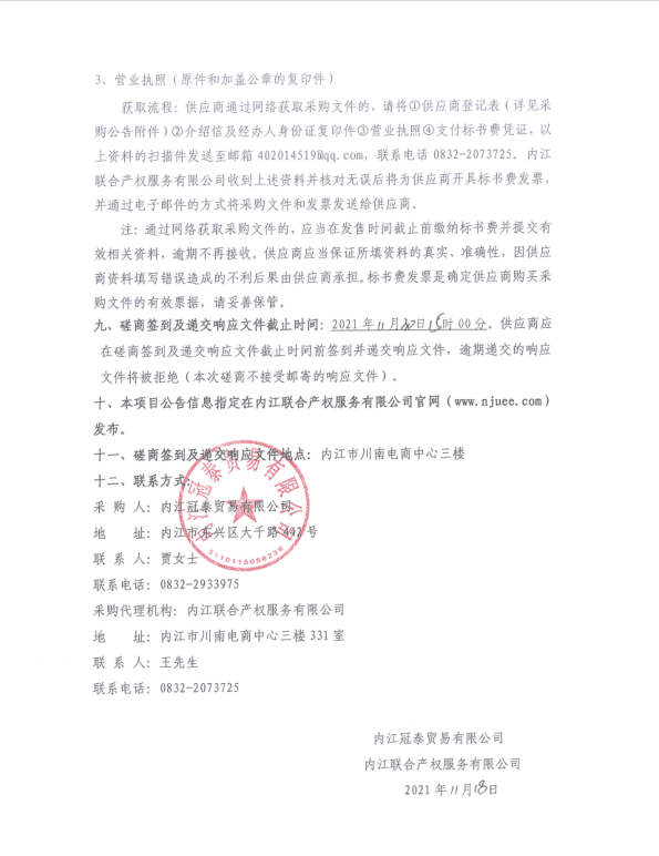 内江冠泰贸易有限公司大宗物资(钢材类)供应商备选库采购项目采购公告