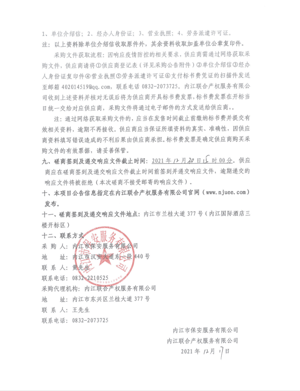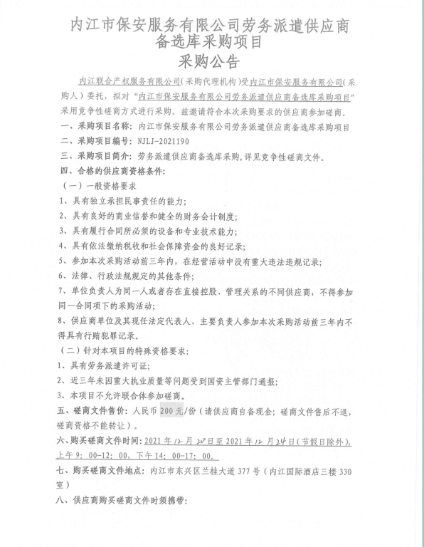 内江市保安服务有限公司劳务派遣供应商备选库采购项目采购公告