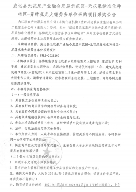 威远县无花果产业融合发展示范园-无花果标准化种植区-界牌观光大棚劳务单位采购项目采购公告