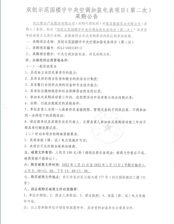 双创示范园楼宇中央空调加装电表项目(第二次)采购公告