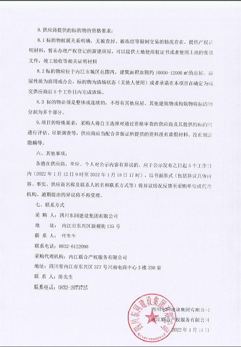 四川东同建设集团有限公司关于拟与唯一供应商采用合作谈判方式采购四川东同建设集团有限公司内江市软件与信息技术服务外包产业园项目(三期)过渡场所D区租赁项目的征求意见公示