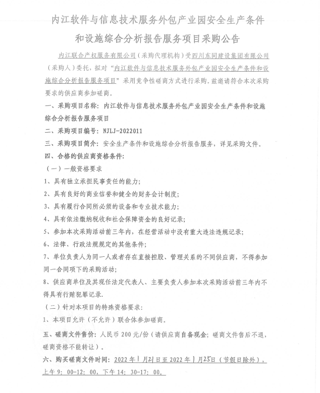 内江软件与信息技术服务外包产业园安全生产条件和设施综合分析报告服务项目采购公告