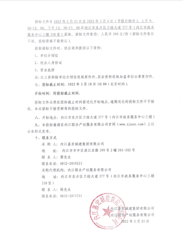 内江嘉宏城建集团有限公司六段锦物业服务采购项目采购公告