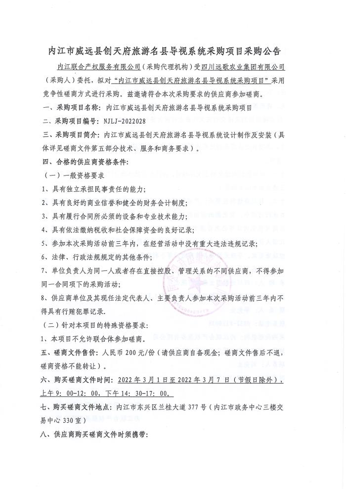 内江市威远县创天府旅游名县导视系统采购项目采购公告