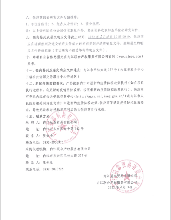 内江冠泰贸易有限公司大宗物资(钢材类)供应商备选库采购项目(第二批次)(第三次)采购公告