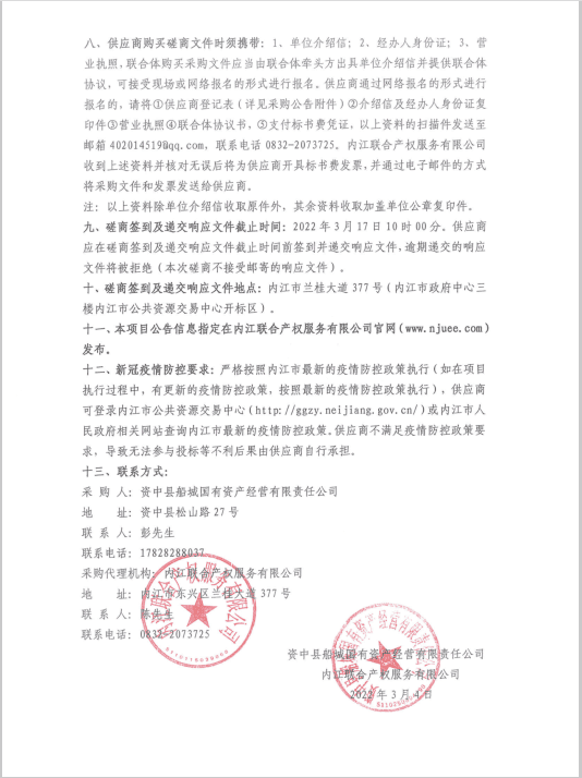 资中县船城国有资产经营有限责任公司资产整合综合服务项目采购公告