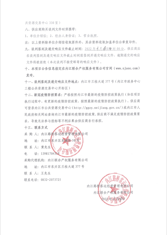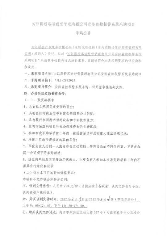 内江路桥客运经营管理有限公司安防监控报警系统采购项目采购公告