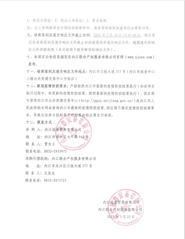 内江冠泰贸易有限公司食材配送服务采购项目采购公告
