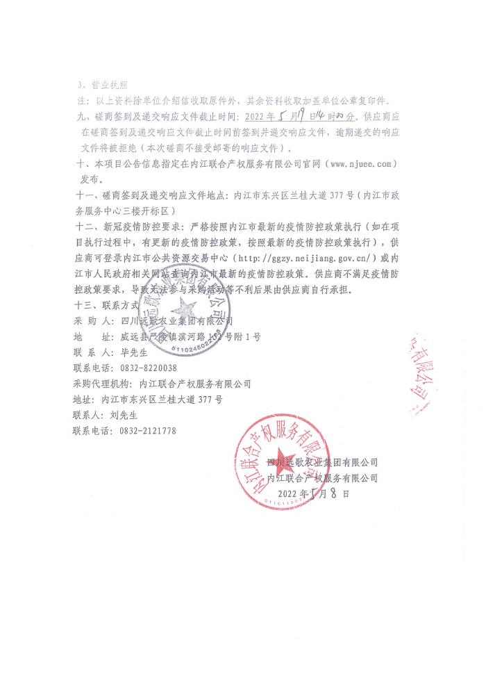 四川省内江市威远县2021年中央预算内高标准农田建设项目材料供应单位采购公告