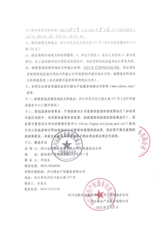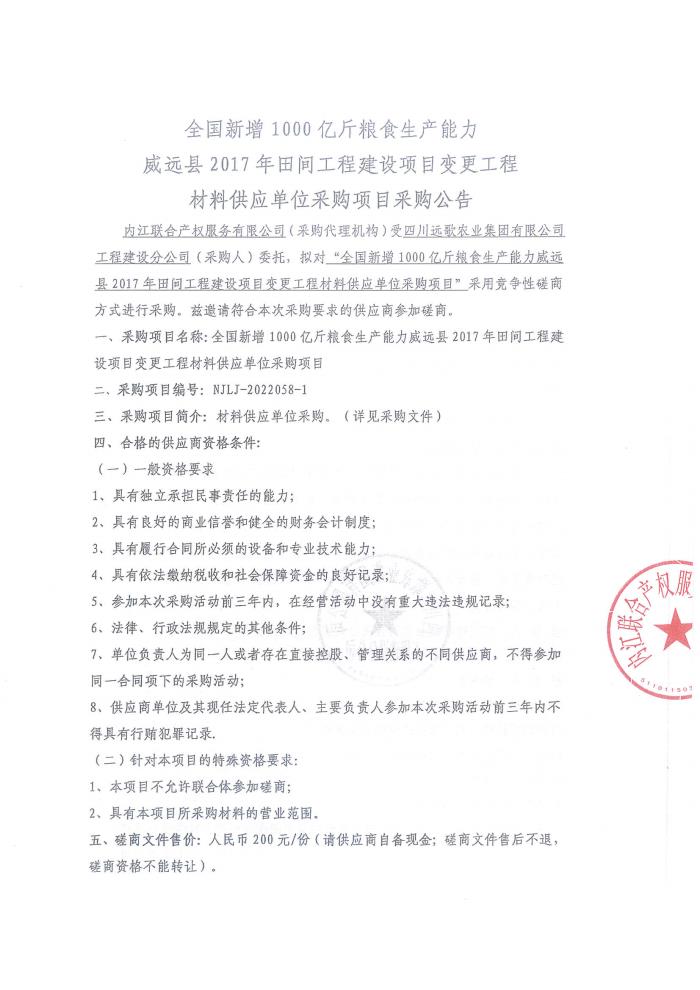 全国新增1000亿斤粮食生产能力威远县2017年田间工程建设项目变更工程材料供应单位采购公告
