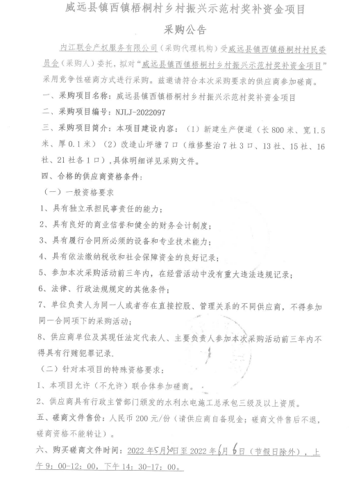 威远县镇西镇梧桐村乡村振兴示范村奖补资金项目采购公告