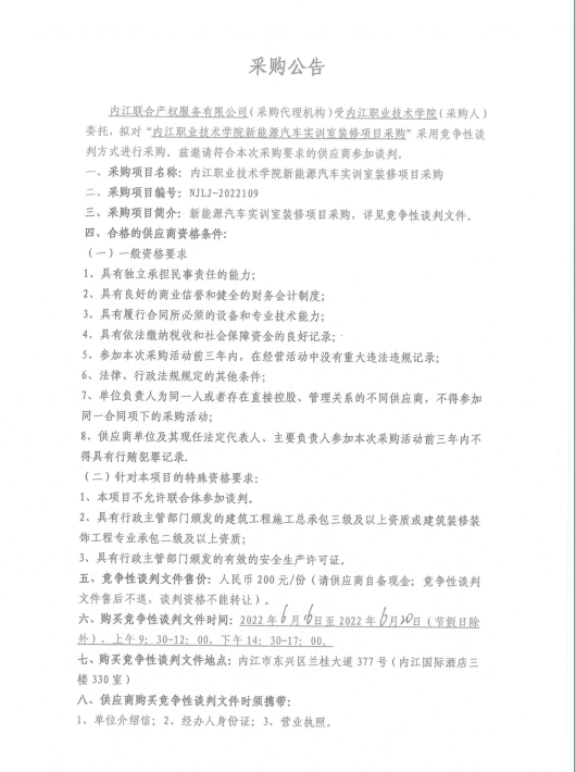 内江职业技术学院新能源汽车实训室装修项目采购-采购公告