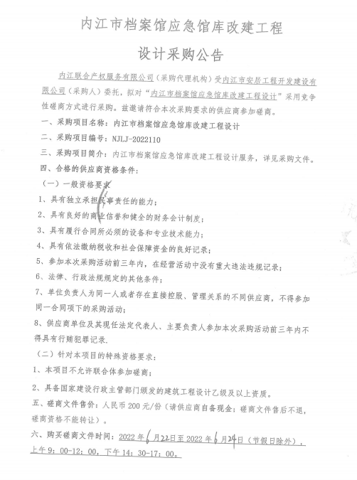 内江市档案馆应急馆库改建工程装饰装修设计更正公告