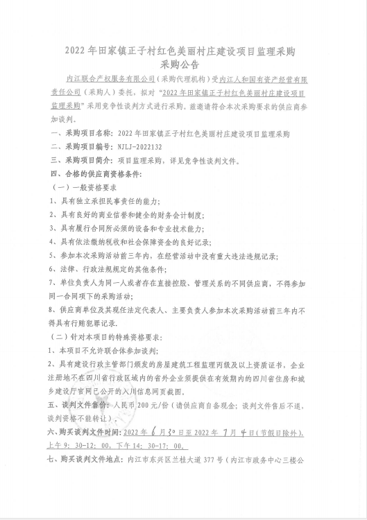 2022年田家镇正子村红色美丽村庄建设项目监理采购采购公告