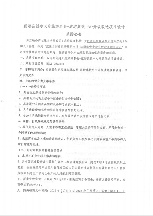 威远县创建天府旅游名县-旅游集散中心升级改造项目设计采购公告