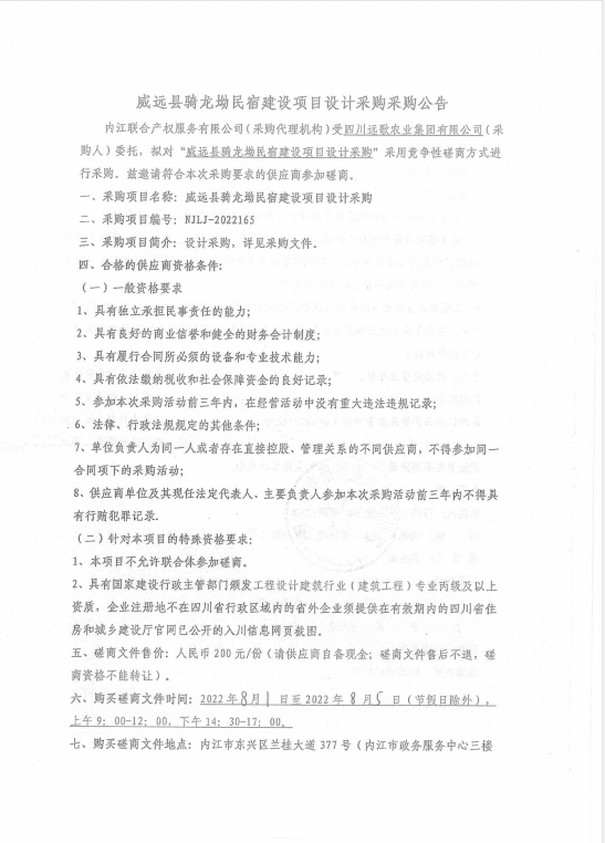 威远县骑龙坳民宿建设项目设计采购采购公告
