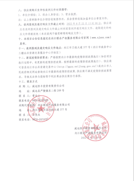 威远双创综合体建设项目孵化园D区专业设备用房装饰装修及设备采购项目(第二次)采购公告