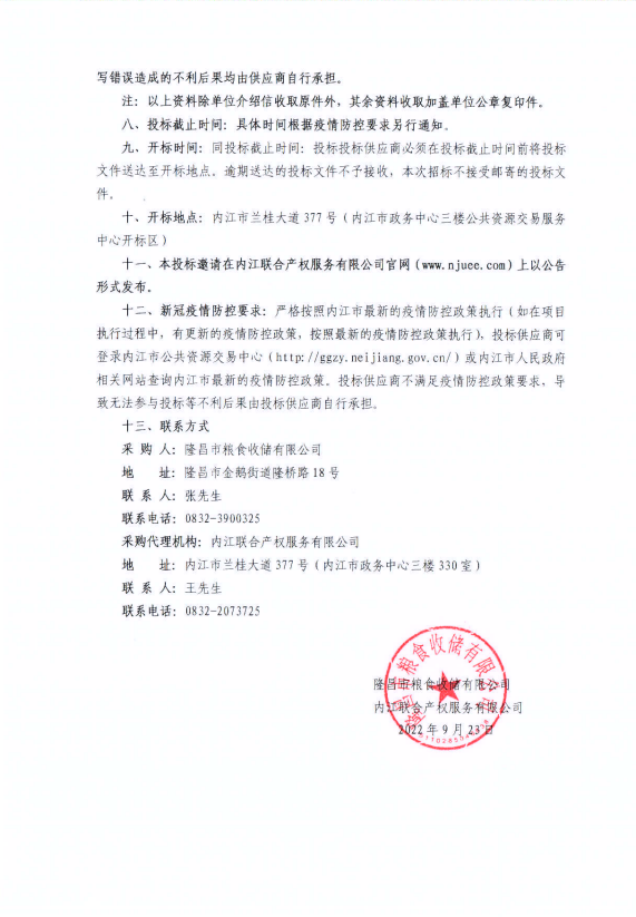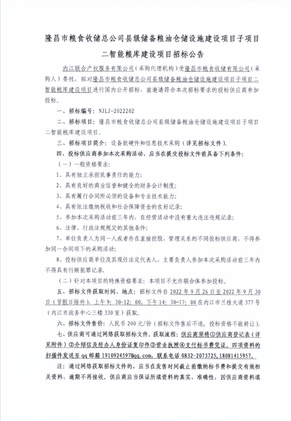 隆昌市粮食收储总公司县级储备粮油仓储设施建设项目子项目二智能粮库建设项目采购公告