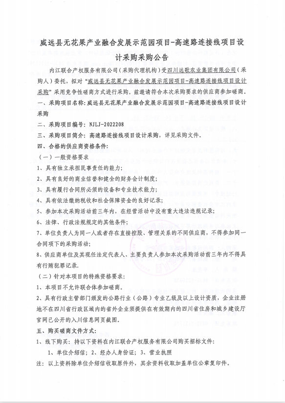 威远县无花果产业融合发展示范园项目-高速路连接线项目设计采购