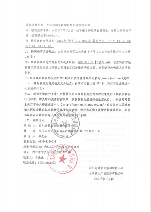 内江市绿禾农贸有限责任公司立式发酵罐及配套系统采购项目采购公告