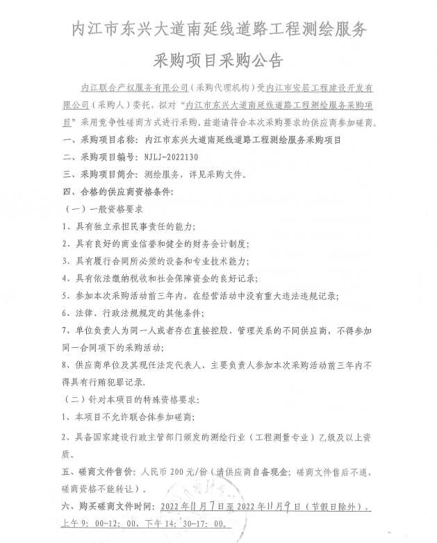 内江市东兴大道南延线道路工程测绘服务采购项目采购公告