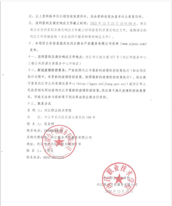 内江职业技术学院科研管理软件系统采购项目(第二次)采购公告