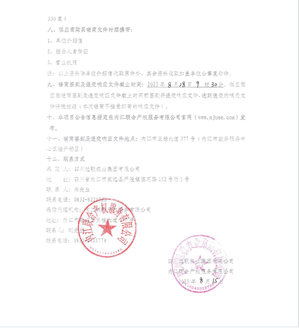 威远县3万吨粮食仓储物流中心建设项目材料供应商采购公告