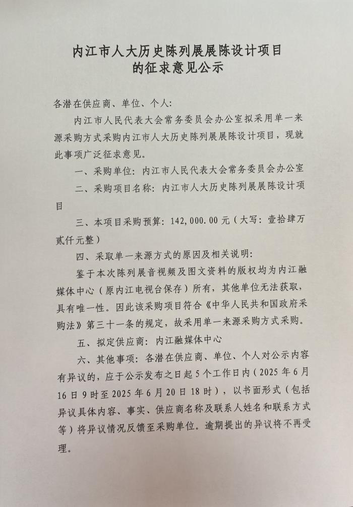 内江市人大历史陈列展展陈设计项目的征求意见公示