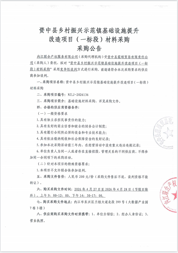 资中县乡村振兴示范镇基础设施提升改造项目(一标段)材料采购