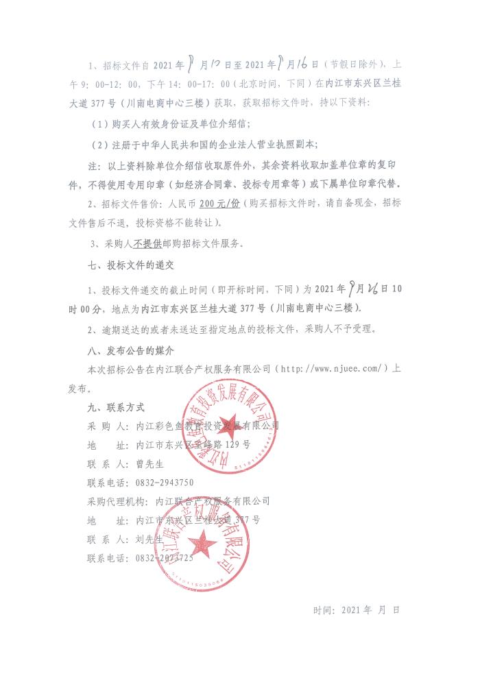 彩色鱼第五(金科集美天宸)幼儿园建筑智能化设施设备采购项目招标公告
